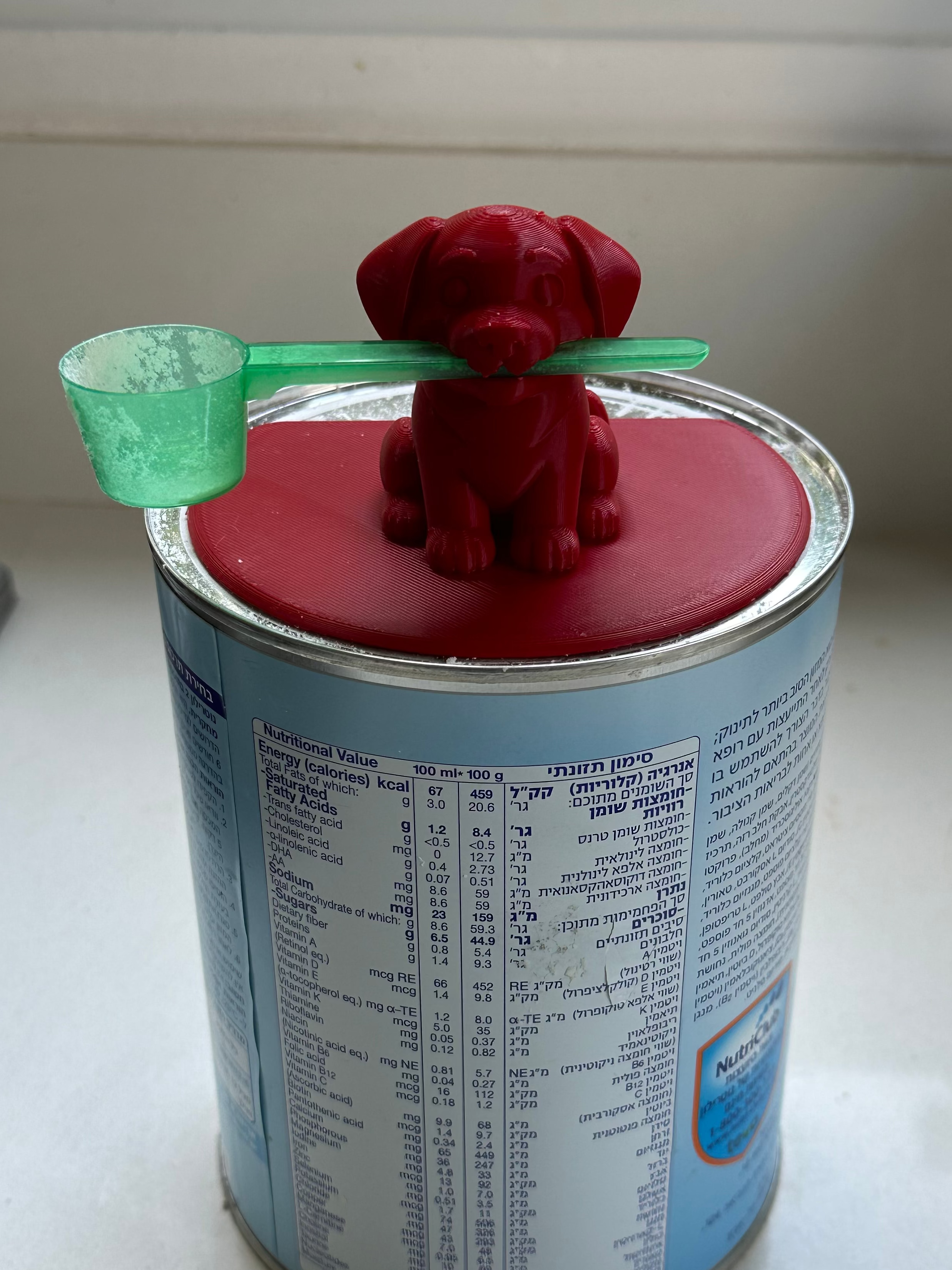 מכסה חכם למיכל תמ״ל שנסגר הרמטית ומתאים בדיוק למיכל המקורי.על המכסה מודפסת דמות חמודה שמחזיקה את הכפית המדידה – כך שהיא תמיד זמינה, נקייה ובמקום קבוע 🐶🥄פחות חיפושים בלילה, יותר שקט להורים.